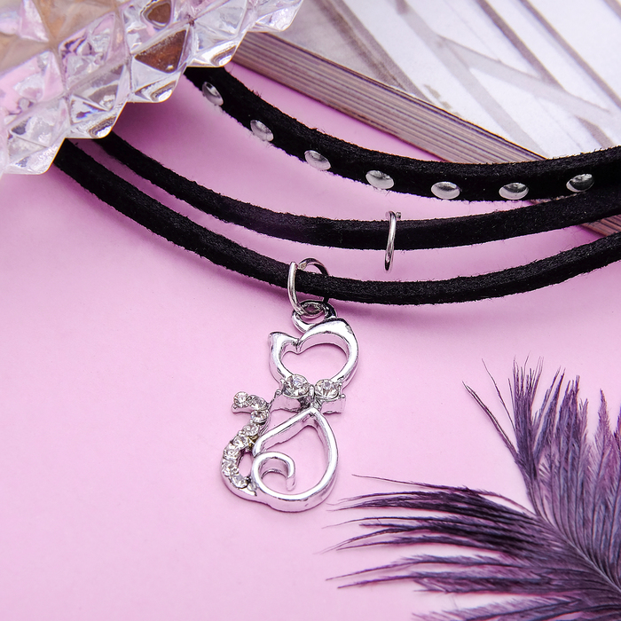 Ни один стиляга не будет выглядеть современно без искусно подобранных украшений, которые завершат его образ! Бижутерия — это современная недорогая альтернатива изделиям из золота и прочих драгоценных металлов. Чокер "Трио" кошечка, цвет чёрно-серебряный — это то, что добавит вам шарма!