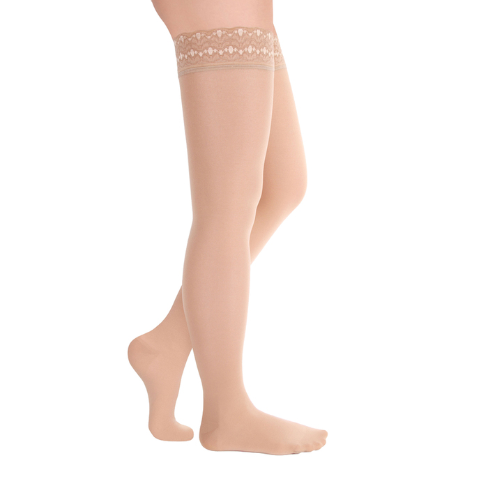 Чулки компресс. с силик. ажурн. резинкой на шир. бедро 1 кл. Normal, Карамель полупр., р. XL 32746