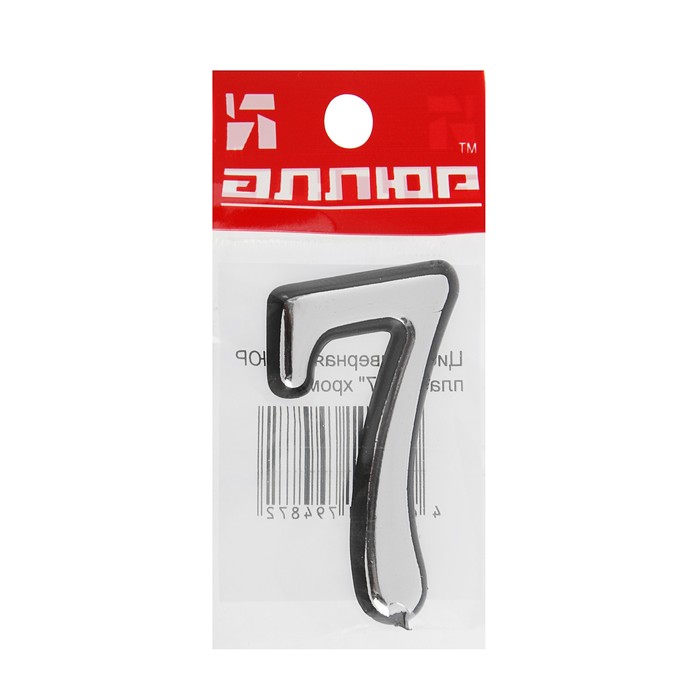 Цифра дверная "7", малая, пластик, самоклеящаяся, цвет хром