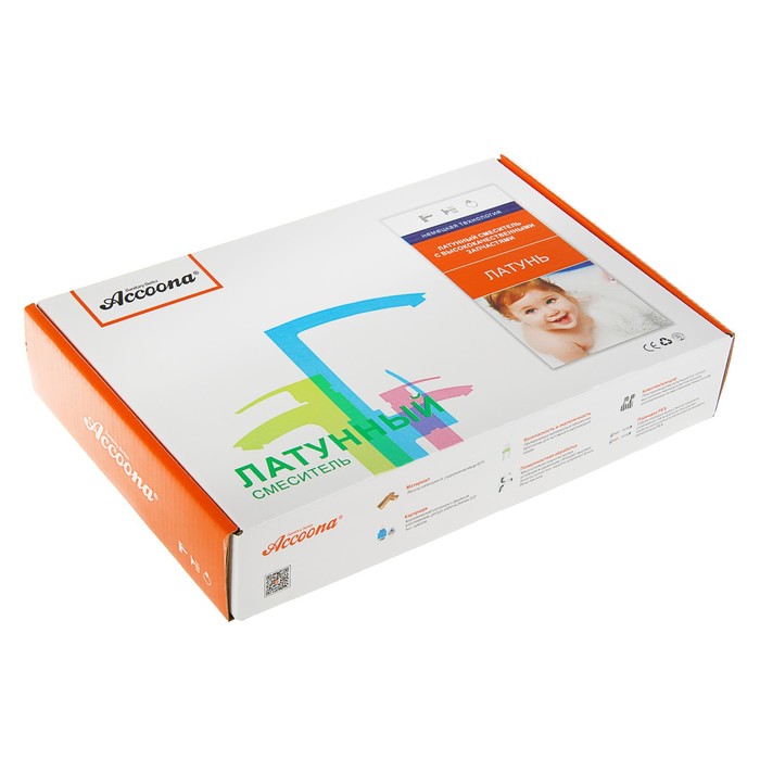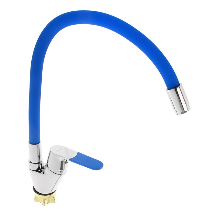Cмеситель для кухни Accoona A4819M, однорычажный, силиконовый излив, латунь, синий/хром