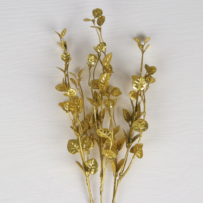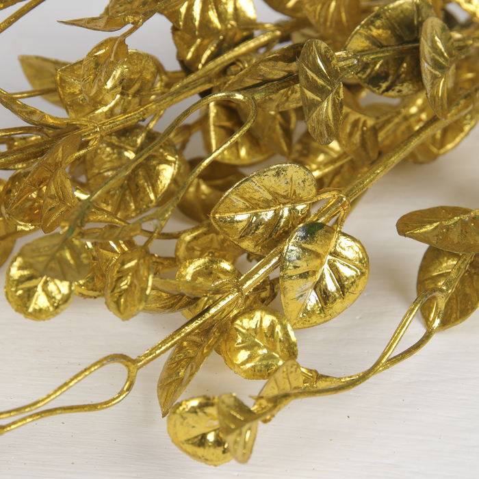 Цветы искусственные блеск "Лиственная веточка" 33 см, золото