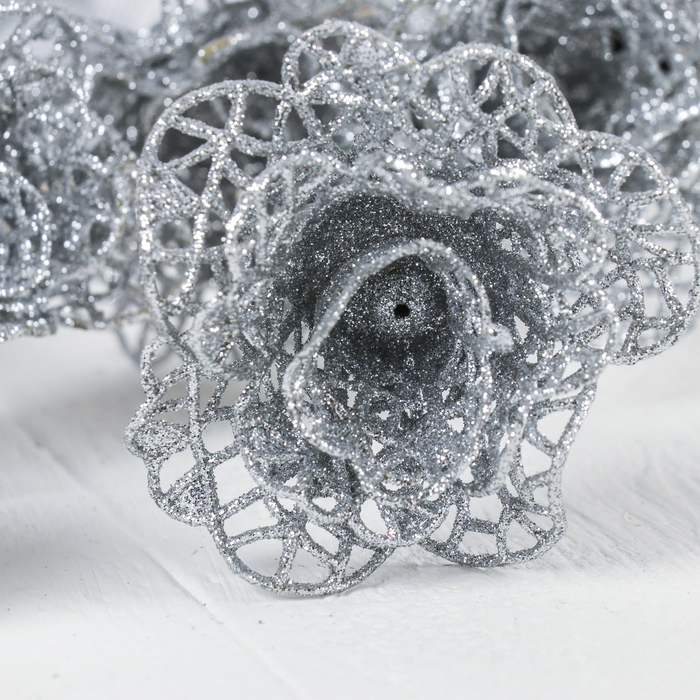 Цветы искусственные блеск "Три резные розы" 5*60 см, серебро