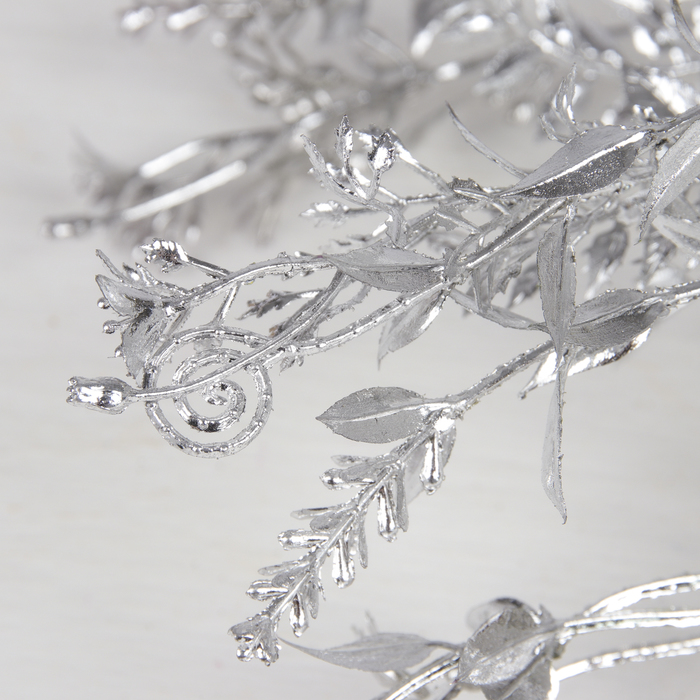 Цветы искусственные блеск "Веточка с завитушками" 32 см, серебро