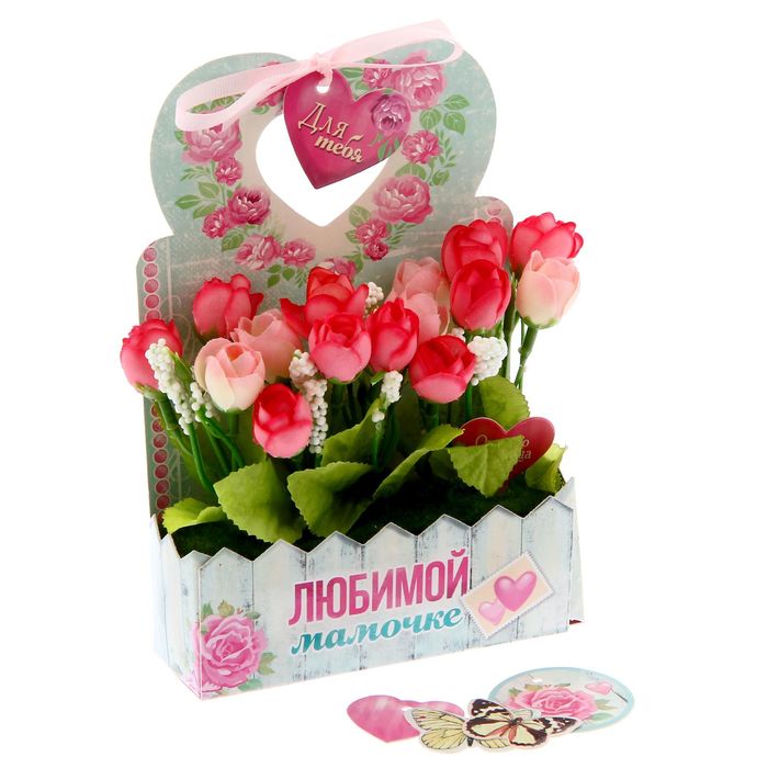 Цветы в картонном кашпо «Любимой мамочке», 12,5 х 20 см