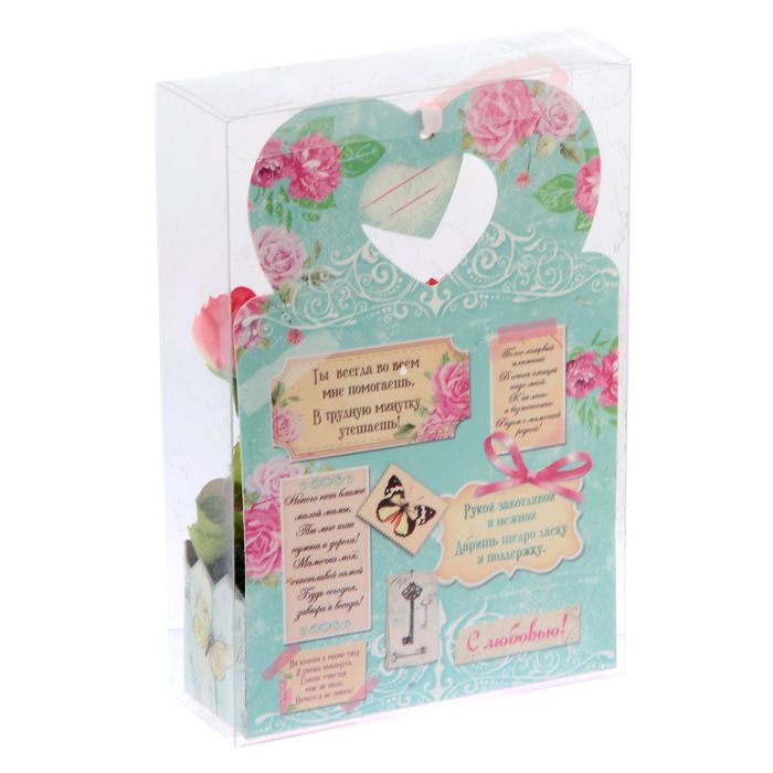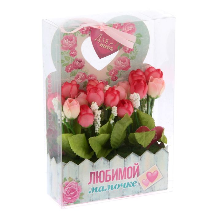 Сувенир упакован в прозрачную пластиковую коробочку, благодаря которой цветы не помнутся во время транспортировки.