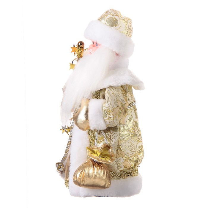 Дед Мороз 30 см золотая шубка, посох и мешок
