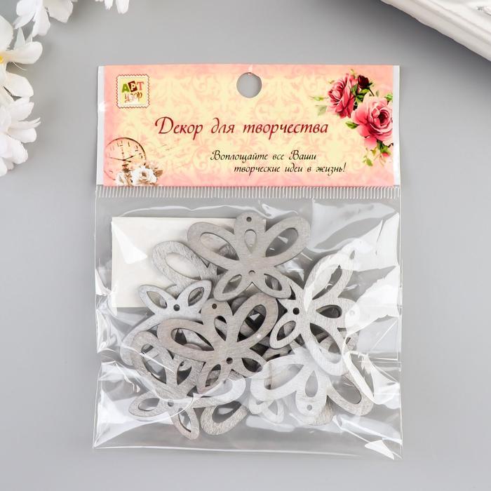 Декор для творчества дерево "Бабочка" серебро набор 10 шт 2,6х3,5 см