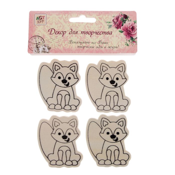 Декор для творчества дерево "Лисичка" (набор 4 шт) 6х5 см