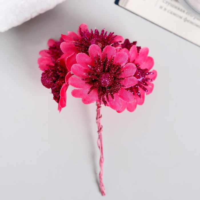 Декор для творчества "Хризантема" блеск розовый (набор-букет 6 цветков) d=3,5 см 10 см
