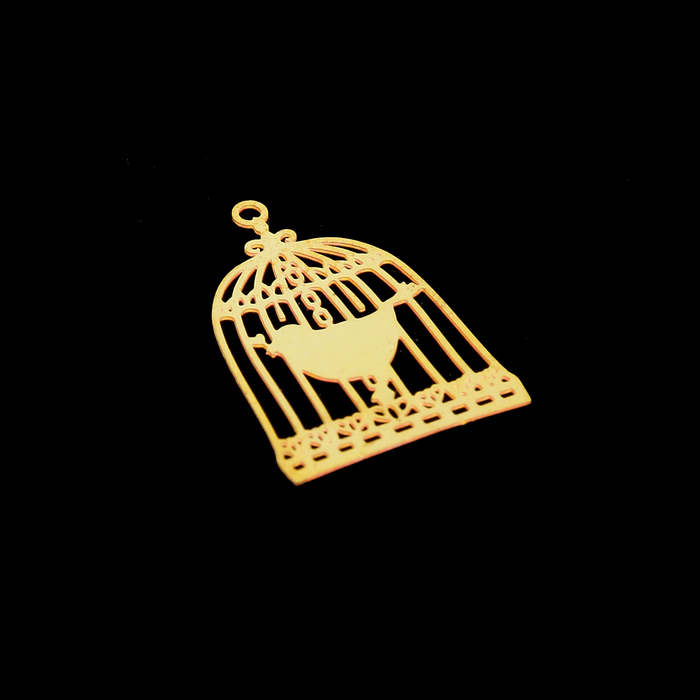Декор для творчества металл "Птица в клетке" золото 2,2х1,6 см