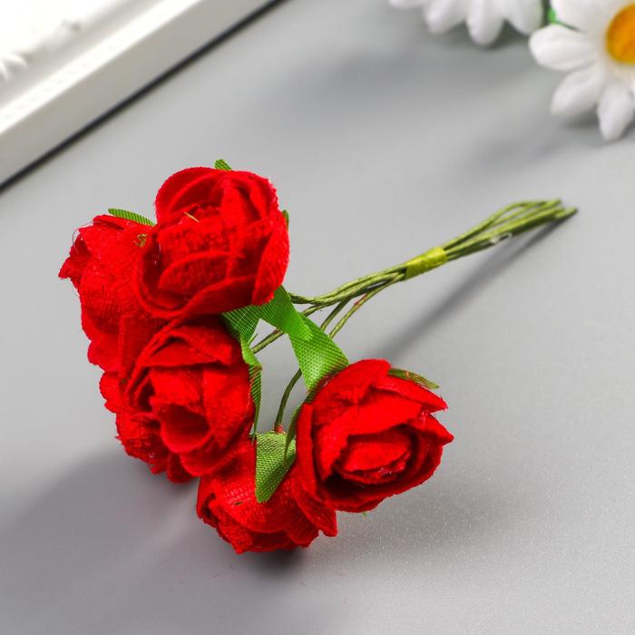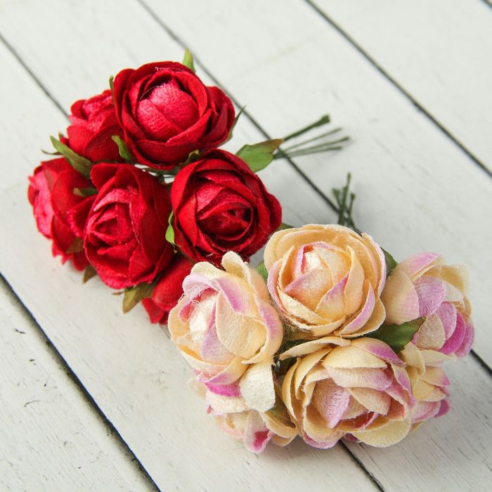 Декор для творчества «Нежные розы» (набор-букет из 6 цветков), 12 см, d = 3,5 см, МИКС