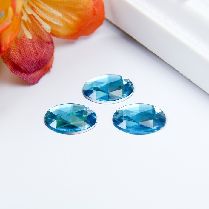 Декор для творчества пластик "Стразы овал. Голубые" набор 34 шт 1,2х1,4 см