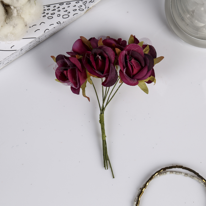Декор для творчества "Розочки" (набор-букет 6 цветков) 10,5 см d=2,5 см МИКС