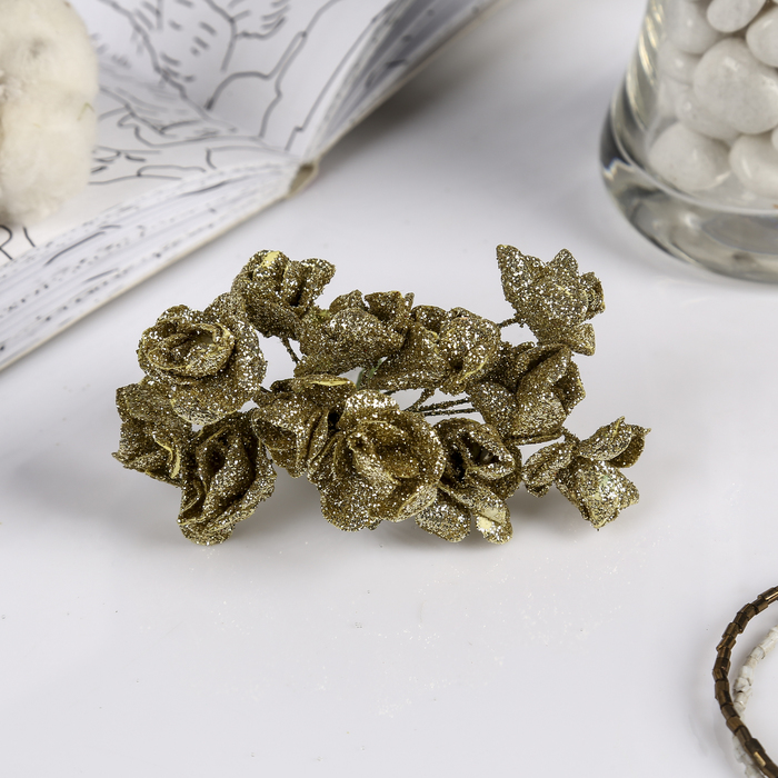 Декор для творчества " Розы" блеск (набор-букет 12 цветков) МИКС 10 см