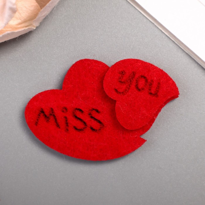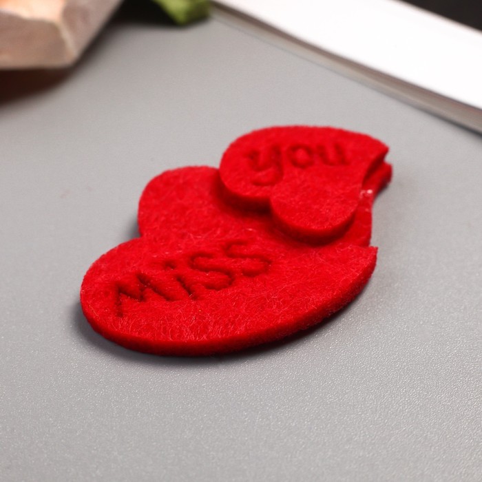 Декор для творчества войлок "Двойное сердце Miss you" (набор 6 шт) 2,8х4,2 см
