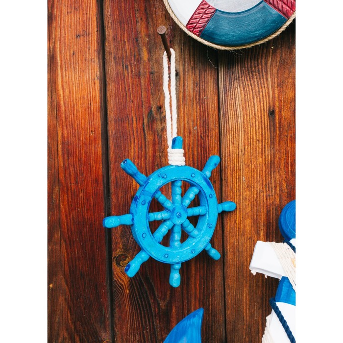 Декор интерьерный «Штурвал» на стену, синий, 18 х 18 х 2 см