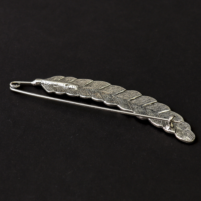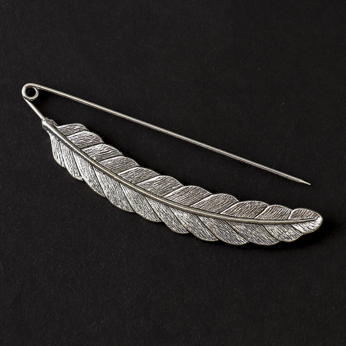 Декор металл для творчества "Булавка с пёрышком" серебро (А19788) 2х8,4 см