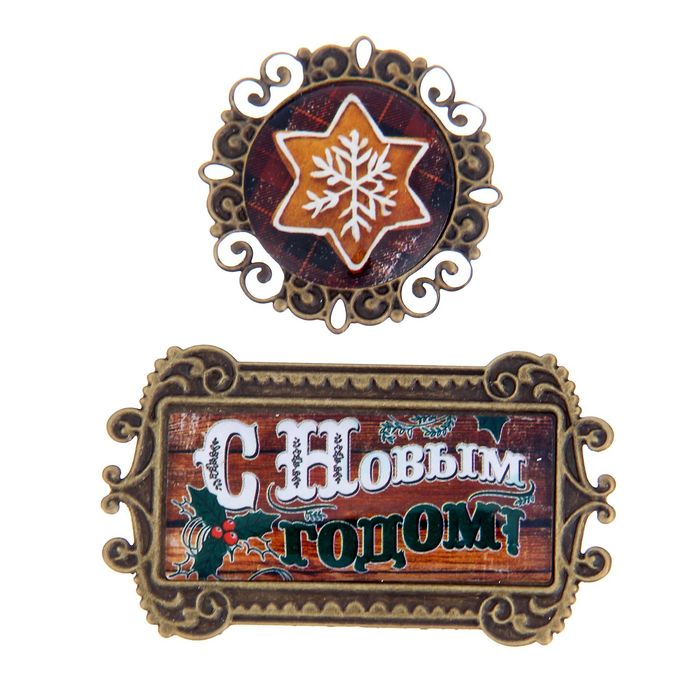 Декор металлический для скрапбукинга Новогоднее шале «С новым годом!», 7,4 × 14,6 см