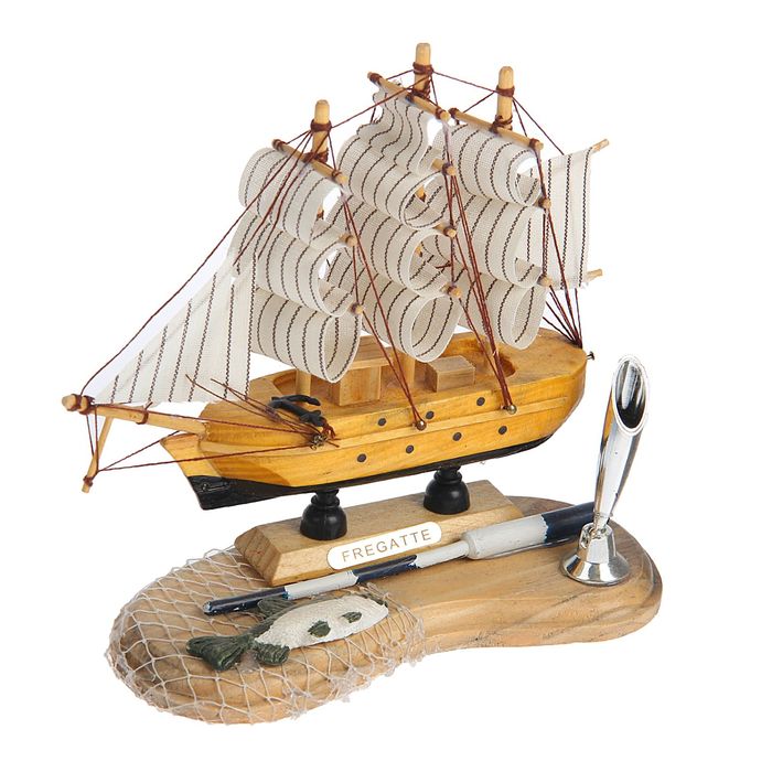 Изящная фигурка в форме кораблика на деревянной подставке покорит сердце любителя морской тематики. Такой сувенир будет органично смотреться на вашем рабочем столе, комоде или прикроватном столике.