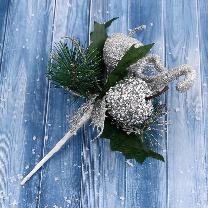 Декор "Зимние грезы" 15 см цветок яблоко в бисере серебро