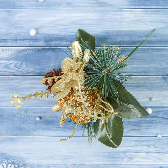 Декор "Зимние грезы" 15 см яблоко цветок шишка блеск золото