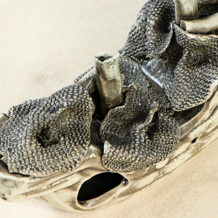 Декорация устойчива к воздействию температуры и подходит для пресной и морской воды. В изделии есть множество отверстий, в которых смогут укрываться мелкие рыбки.