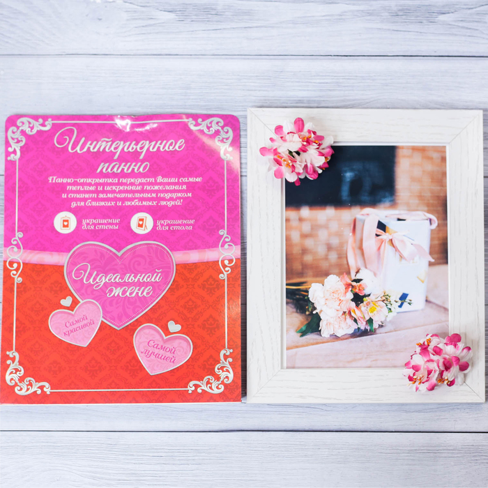 Надоели однообразные открытки? Нам тоже! Поэтому мы создали яркое и необычное Декоративная фоторамка–панно «Идеальная жена» с цветами, 15 х 20 см с самыми искренними и душевными пожеланиями. Оно станет отличной альтернативой открыткам и, уж точно, не будет пылиться на верхней полке в шкафу. Виновник торжества может поставить его, например, на рабочий стол или на полочку в стеллаже — словом, на самое видное место.