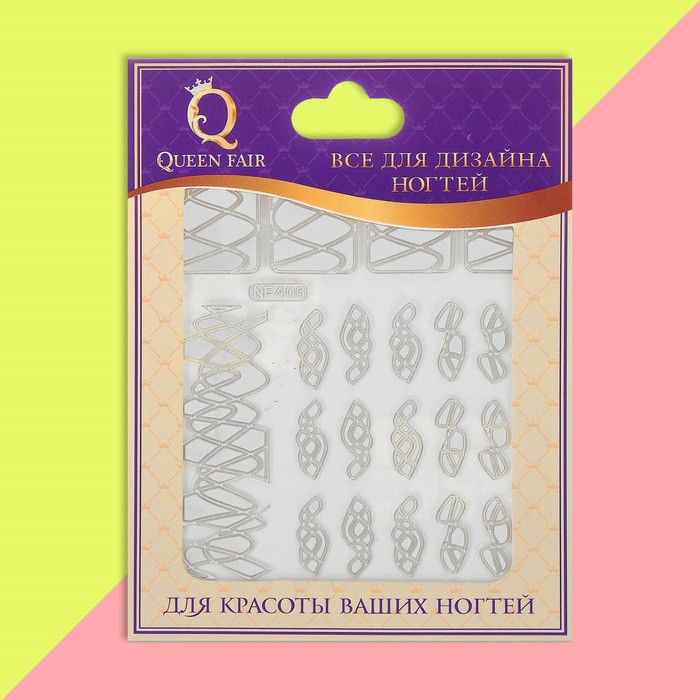 Декоративная наклейка-скотч для ногтей "Узор" цвет серебристый