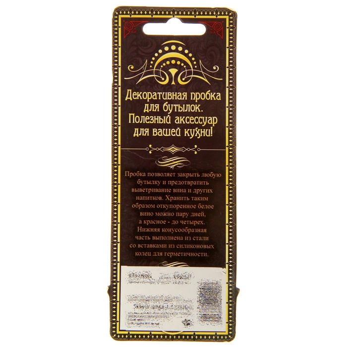 В тех случаях, когда гости уже разошлись, а вино еще осталось, вам непременно пригодится декоративная пробка для бутылки "Новых открытий". Оставив бутылку незакрытой, на следующий день вы обязательно огорчитесь, ведь волшебный напиток потеряет свой вкус и аромат. Но декоративная пробка убережет вас от разочарований, идеально сохранив вино.