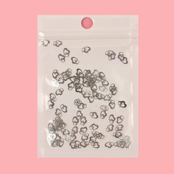 Декоративный элемент для ногтей «Два сердца», 0,6x0,6см, 100шт, цвет серебристый