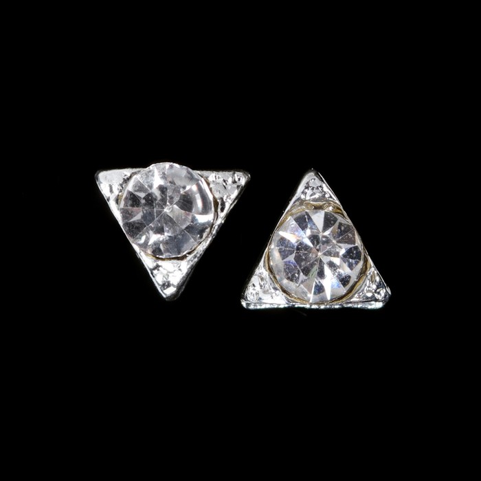 Декоративный элемент для ногтей «Треуг со стразами», объёмный, 0,5x0,5см, 2шт, цвет серебристый