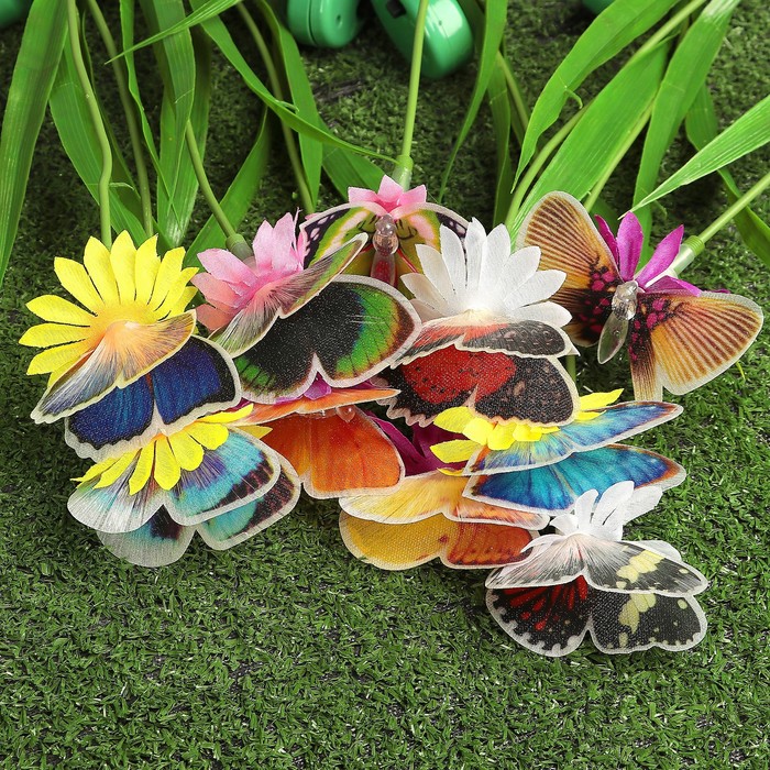 Декоративный штекер на солнечной батарее "Бабочка на цветке" микс