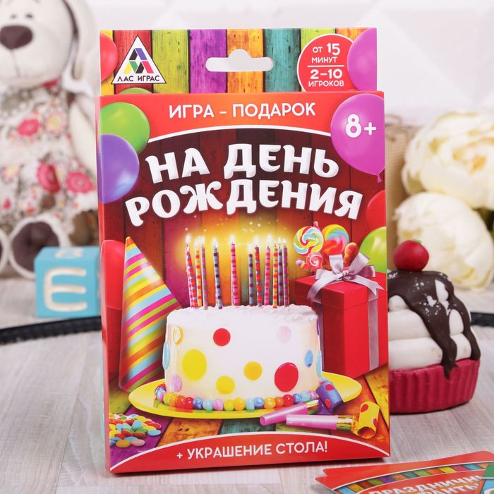 Что такое день рождения? Это радостный смех и подарки! Эта игра поможет добавить ещё больше веселья вашему празднику. Здесь собрано целых 4 колоды: фанты, смешные вопросы, весёлая игра на объяснение слов и поздравления для именинника. Но самое главное — она послужит отличным украшением праздничного стола! Скорее собирайте подарочек, вытягивайте карточки и веселитесь!