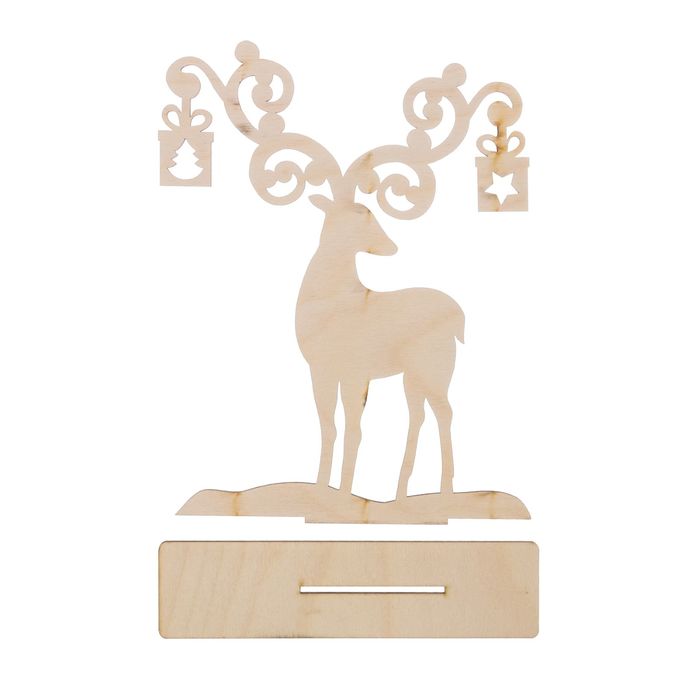 Деревянная заготовка на подставке «Олень с подарками», 20 × 30 см подойдёт для создания новогоднего подарка, оформления интерьера, а также станет стильным аксессуаром для фотосессии.