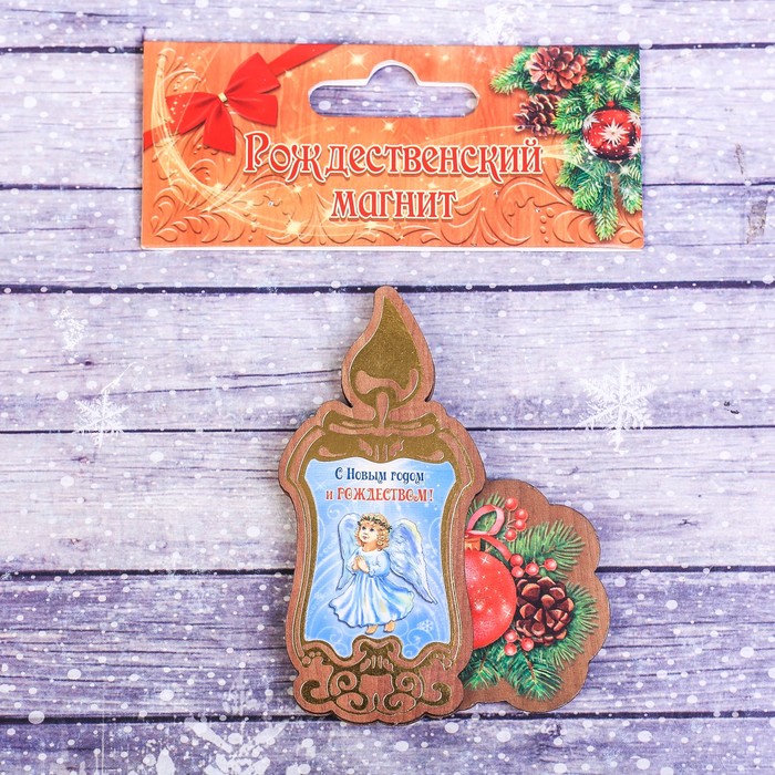 Рождественский магнит изготовлен из дерева и дополнен ажурным резным узором. В центре вклеено полноцветное изображение. Такой сувенир станет душевным подарком к великому празднику. Изделие поставляется в пакете с оригинальным клапаном.