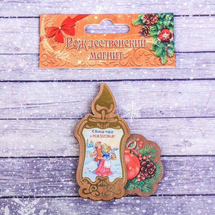 Рождественский магнит изготовлен из дерева и дополнен ажурным резным узором. В центре вклеено полноцветное изображение. Такой сувенир станет душевным подарком к великому празднику. Изделие поставляется в пакете с оригинальным клапаном.