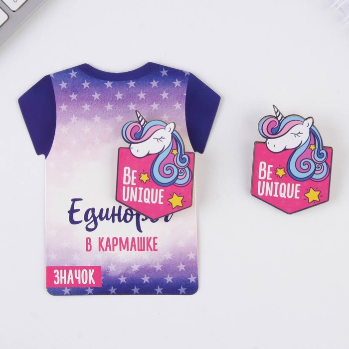 Деревянный значок "Be unique"