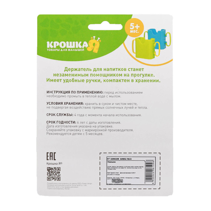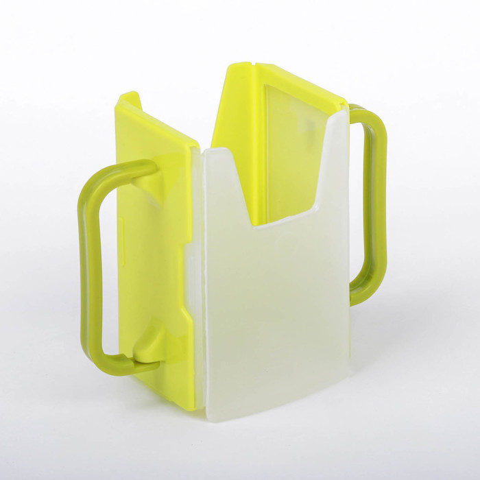 Приспособление поможет маленькому ребёнку удержать коробочку с напитком. Взявшись за 2 ручки, кроха не надавит случайно на стенки и не разольёт жидкость. Изделие удобно использовать дома или брать с собой на прогулку.