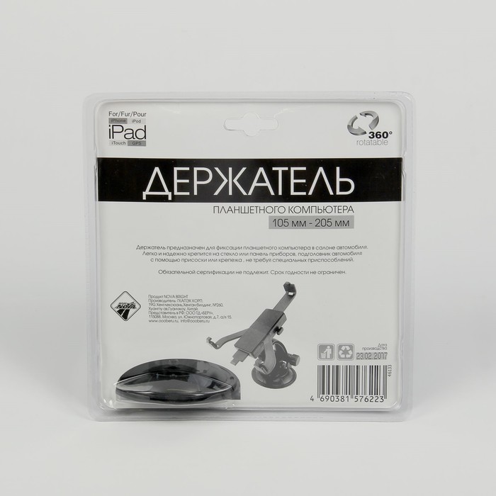 Держатель для планшета Nova Bright, на присоске, 105-205 мм