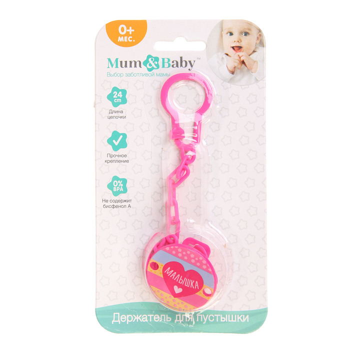Держатель для пустышки «Малышка» на цепочке, цвет фуксия