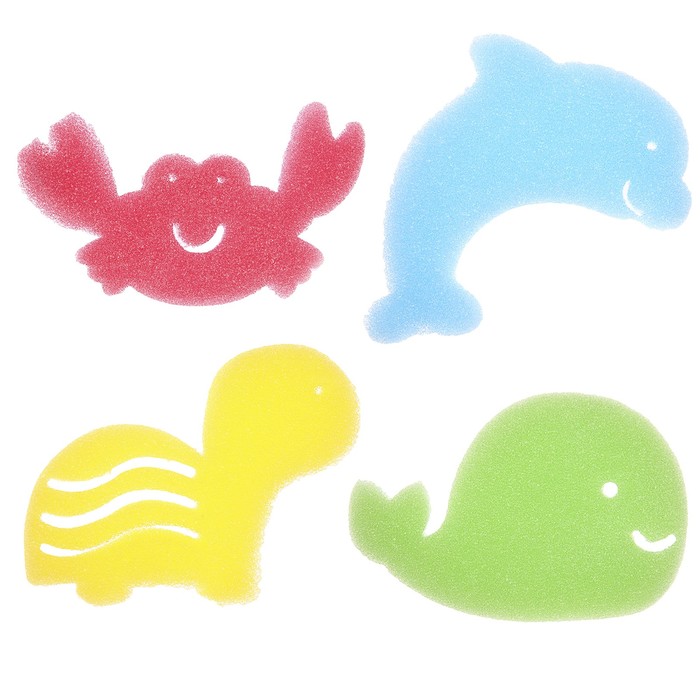 Детская губка-мочалка «Морские жители» для купания, игровой набор 4 шт.