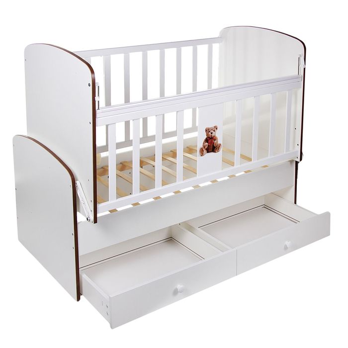 Детская кроватка «Мишки» на маятнике, с 2 ящиками, цвет белый