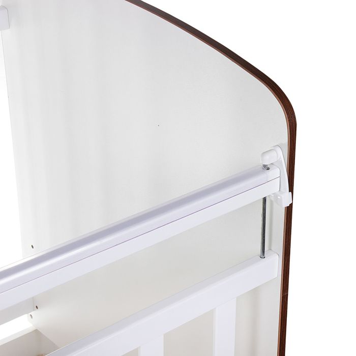 Кроватка с маятником создана для новорождённых. Благодаря простому механизму вы без труда убаюкаете малыша. Мебель начинает раскачиваться от лёгкого прикосновения. Если кроха заворочается во сне, то от его движений маятник запустится и успокоит младенца.