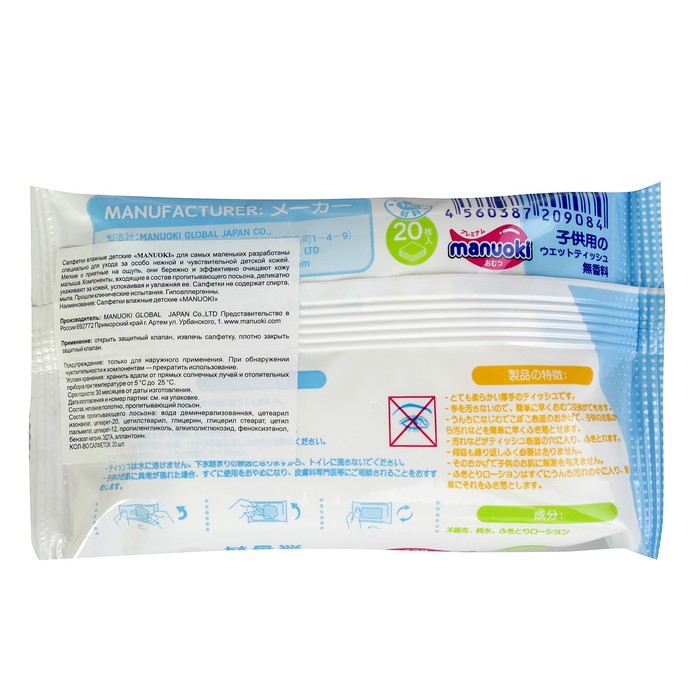 Влажные салфетки являются незаменимым помощником для быстрого устранения загрязнений. Детские влажные салфетки Manuoki, 20 шт. изготовлены из мягкого, прочного материала, который делает процедуру максимально комфортной.
