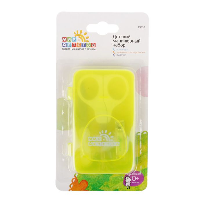 Детский маникюрный набор в футляре, 3 предмета: ножницы, щипчики, пилочка для ногтей, от 0 мес., цвета МИКС
