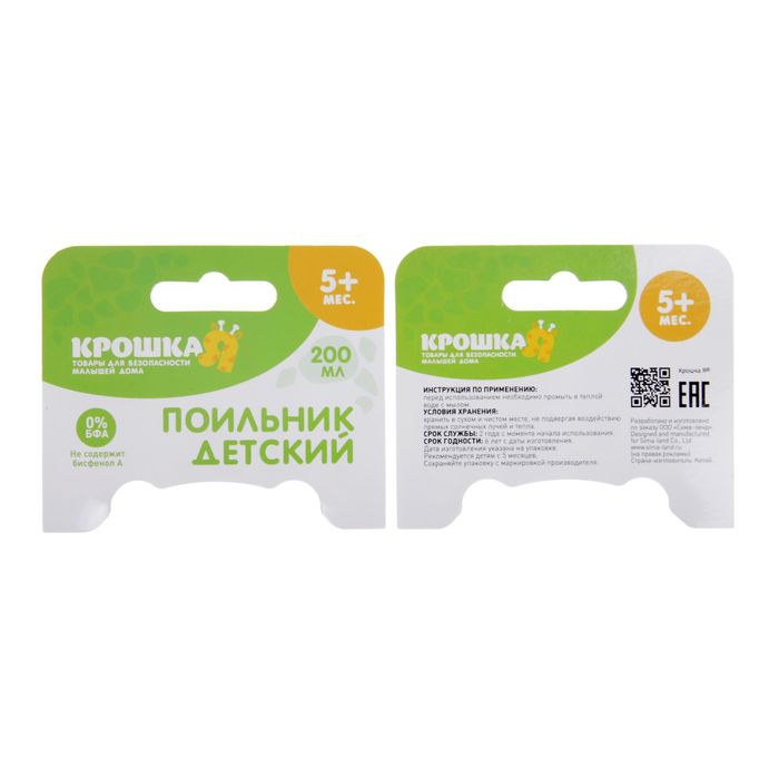 Качество товара подтверждается сертификатом соответствия ЕАС. Поильник выполнен из безопасного пластика, предназначенного для производства детской посуды.