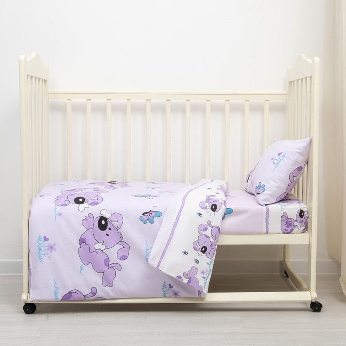 Детское постельное бельё "Дружок", 95*147, 104*146, 40*60 см, сиреневый, бязь, хл100% 120 гм