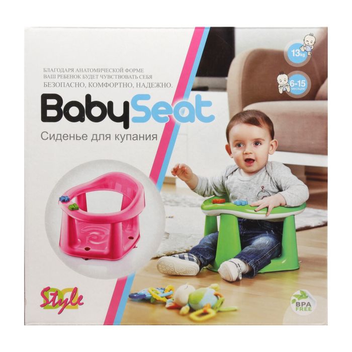 Зафиксируйте сиденье на дне ванны или душевой кабины с помощью четырёх присосок. Благодаря высоким бортикам карапузу будет удобно. Яркие игрушки на передней панели займут внимание непоседы и поспособствуют развитию тактильных ощущений и мелкой моторики.