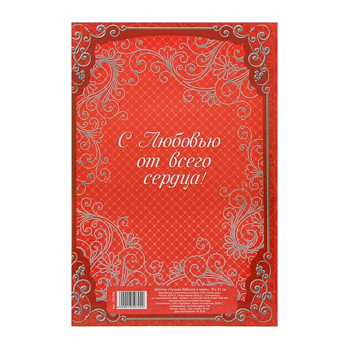 Он займёт достойное место среди официальных документов адресата, ведь будет вручён ему по праву: за самые исключительные заслуги! Изделие изготовлено из ламинированного картона и бумаги.