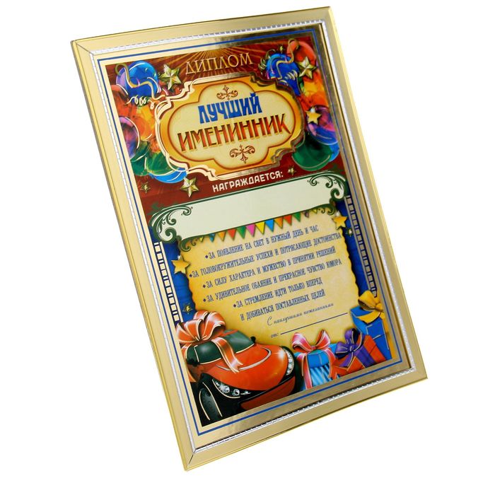 Диплом "Лучший именинник" — это интересная альтернатива слегка надоевшим открыткам: необычная форма, оригинальный дизайн и тёплые душевные слова в адрес виновника торжества.